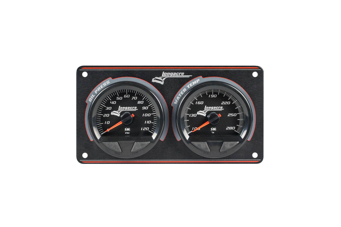 Gauge Panel Assembly - SMi Elite Waterproof - Analog - Oil Pressure / Water Temperature - 2-5/8 in Diameter - Black Face - Warning Light - Kit
