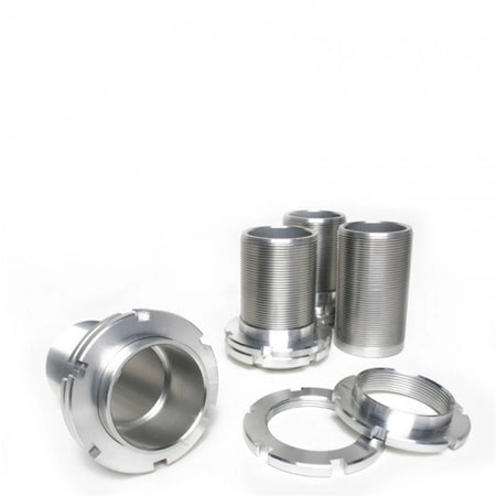 Manufactured from CNC machined with an anodized finish for superior strength and corrosion protection. Sleeves manufactured from high quality T-6061 billet aluminum for superior strength and durability. Direct bolt-on replacement item; no modifications required.Adjusts your ride height simply by adjusting the dual locking perches.Raises or lowers your vehicle to desired ride heights for significant improvement to handling & response capabilities, while being able to adjust your wedge. Adjustment spanner wrench and hardware are included, sold in set of 4 adjusters. Available in silver or black.