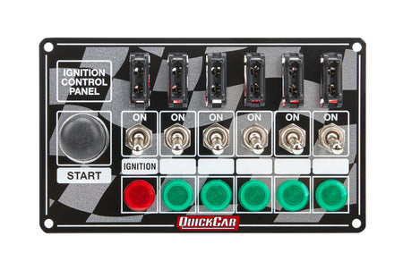 Switch Panel - Dash Mount - 6.875 x 4.125 in - 6 Toggles / 1 Momentary Button - Fused - Indicator Light - Checkered - Kit