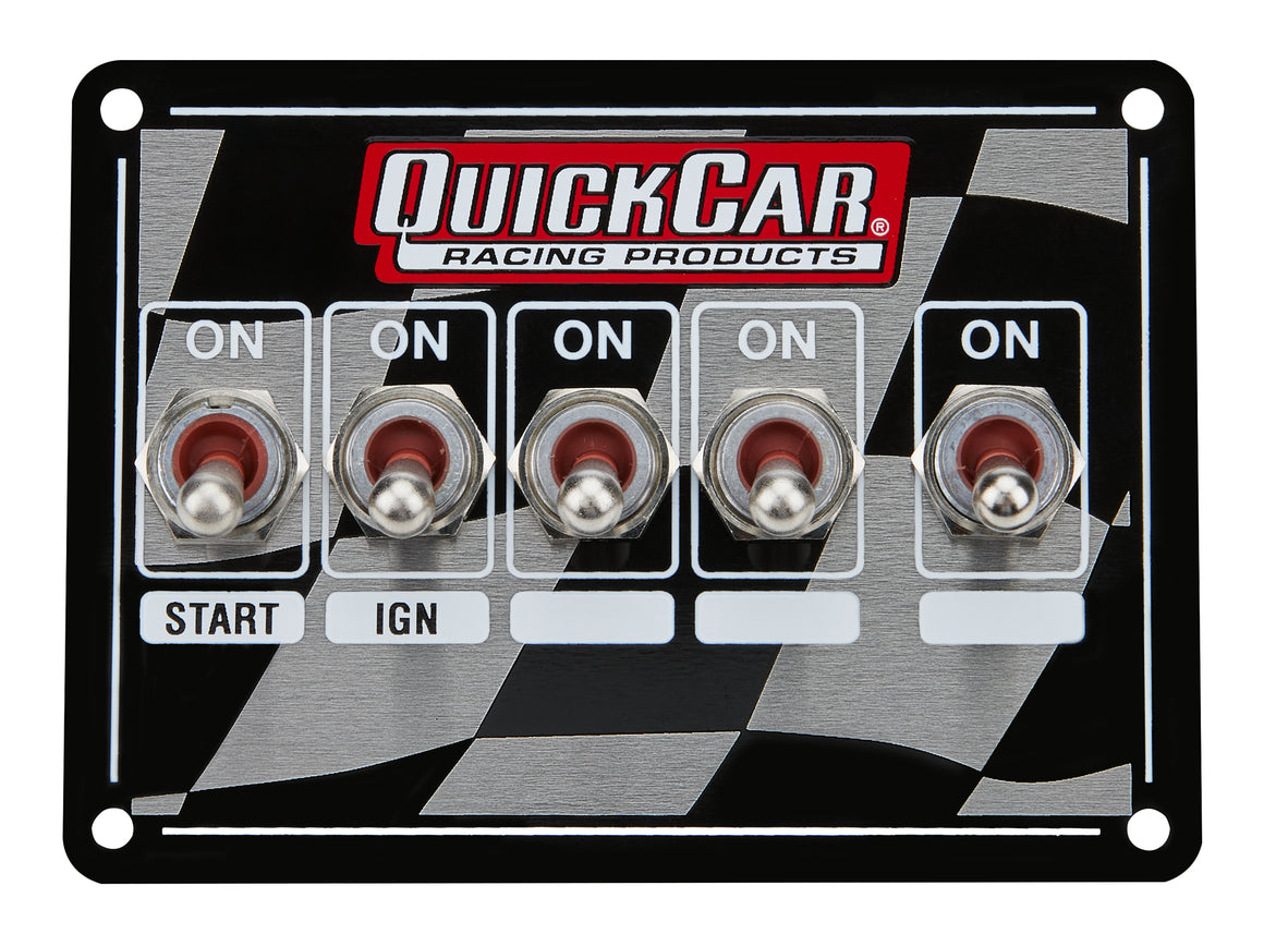 Switch Panel - Dash Mount - 4.125 x 3 in - 4 Toggles / 1 Momentary Toggle - Checkered - Dual Distributor Pickups - Each