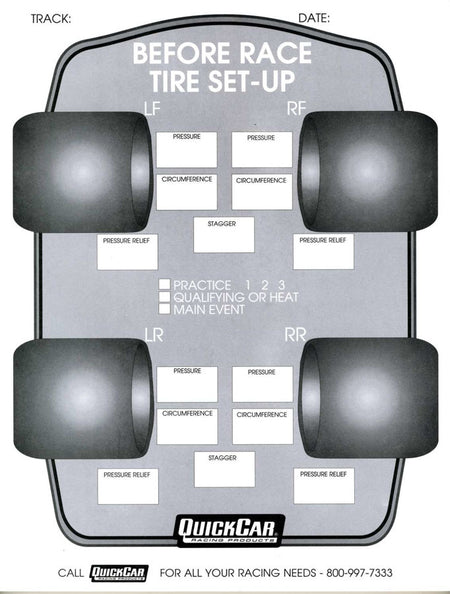 Tire Setup Chart - Before Race - 50 Sheet in a Pad - Each