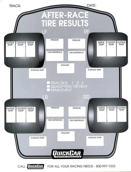 Tire Setup Chart - After Race - 50 Sheet in a Pad - Each