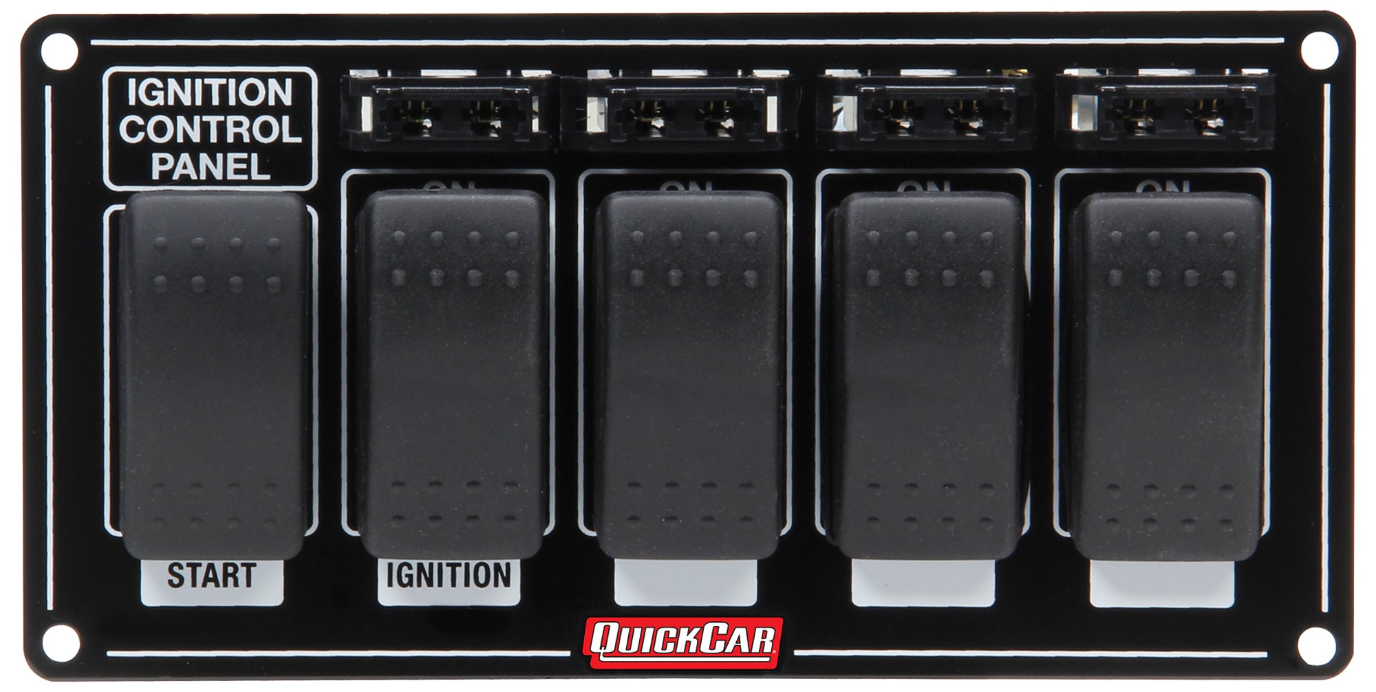 Switch Panel - Dash Mount - 7 x 3.5 in - 4 Rockers / 1 Momentary Rocker - Fused - Black - Each