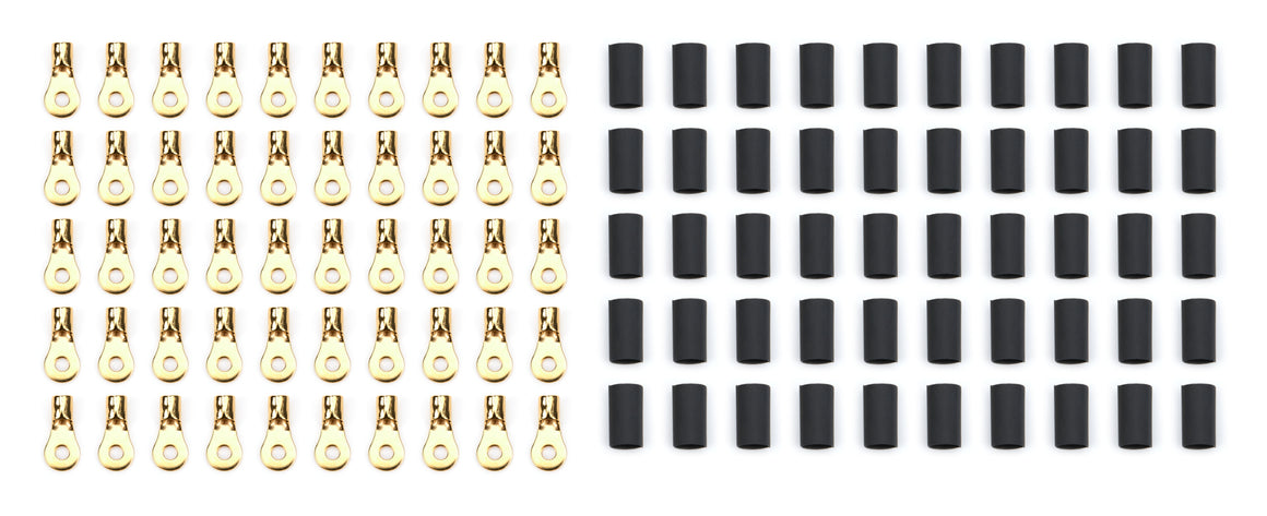 Ring Terminal - 12-10 Gauge Wire - Number 6 Hole - Heat Shrink Included - Copper - Set of 50