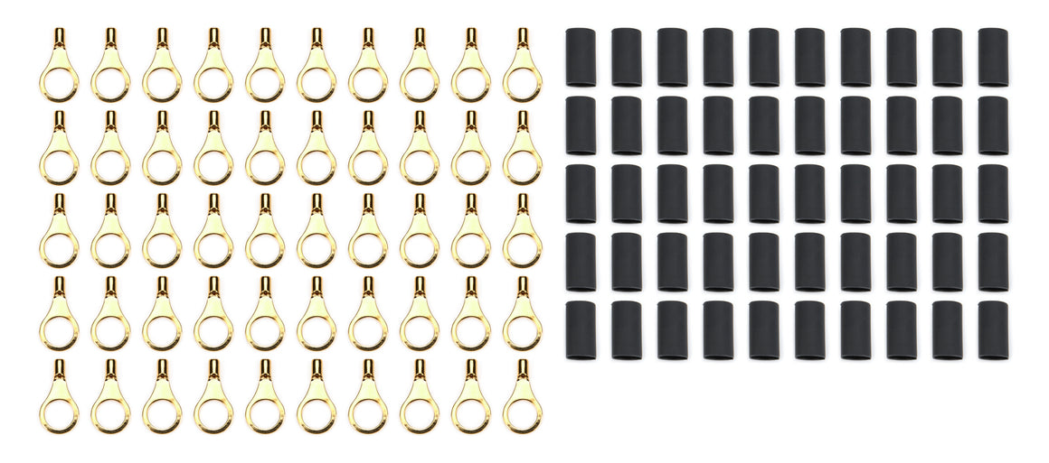 Ring Terminal - 22-18 Gauge Wire - 5/16 in Hole - Heat Shrink Included - Copper - Set of 50