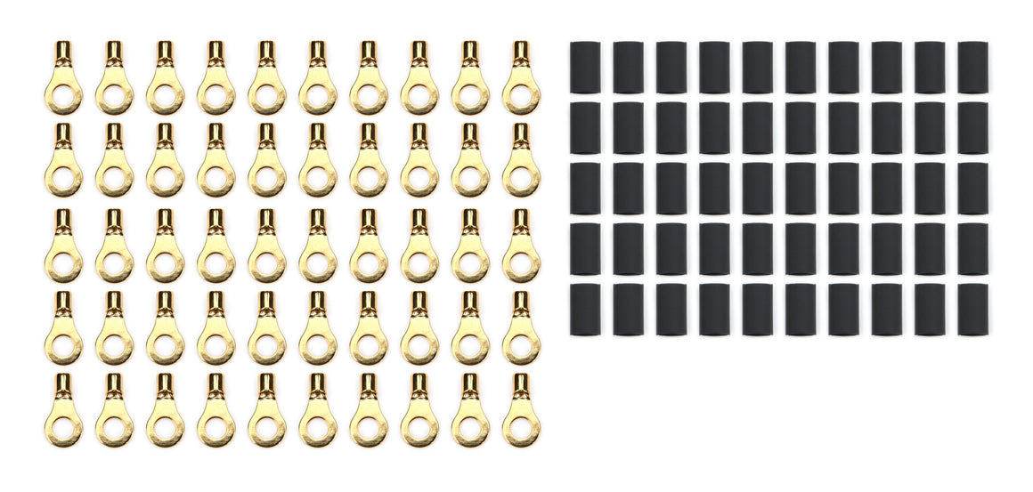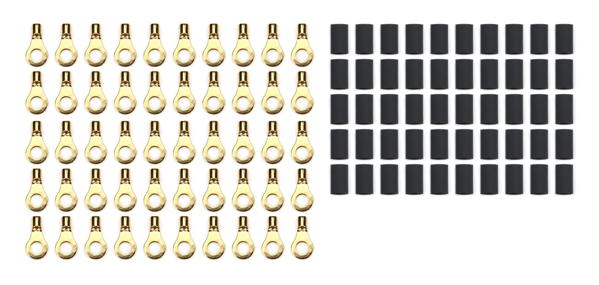 Ring Terminal - 12-10 Gauge Wire - 1/4 in Hole - Heat Shrink Included - Copper - Set of 50
