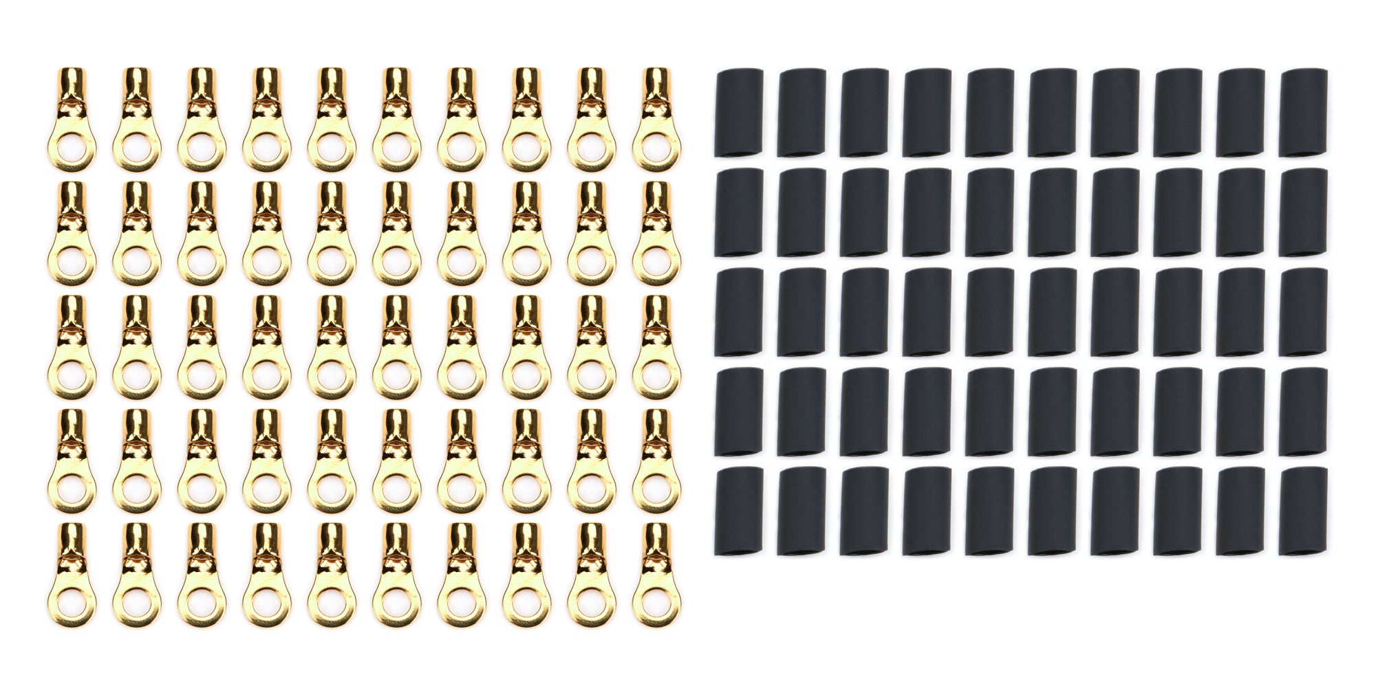 Ring Terminal - 12-10 Gauge Wire - Number 10 Hole - Heat Shrink Included - Copper - Set of 50