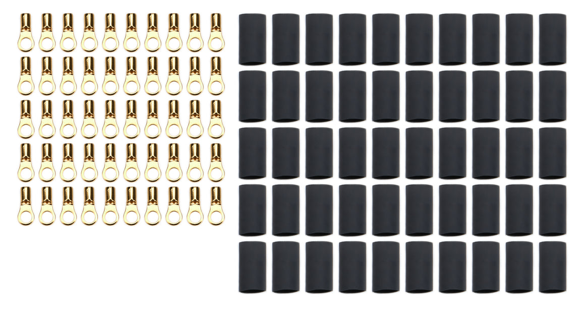 Ring Terminal - 22-16 Gauge Wire - Number 6 Hole - Heat Shrink Included - Copper - Set of 50