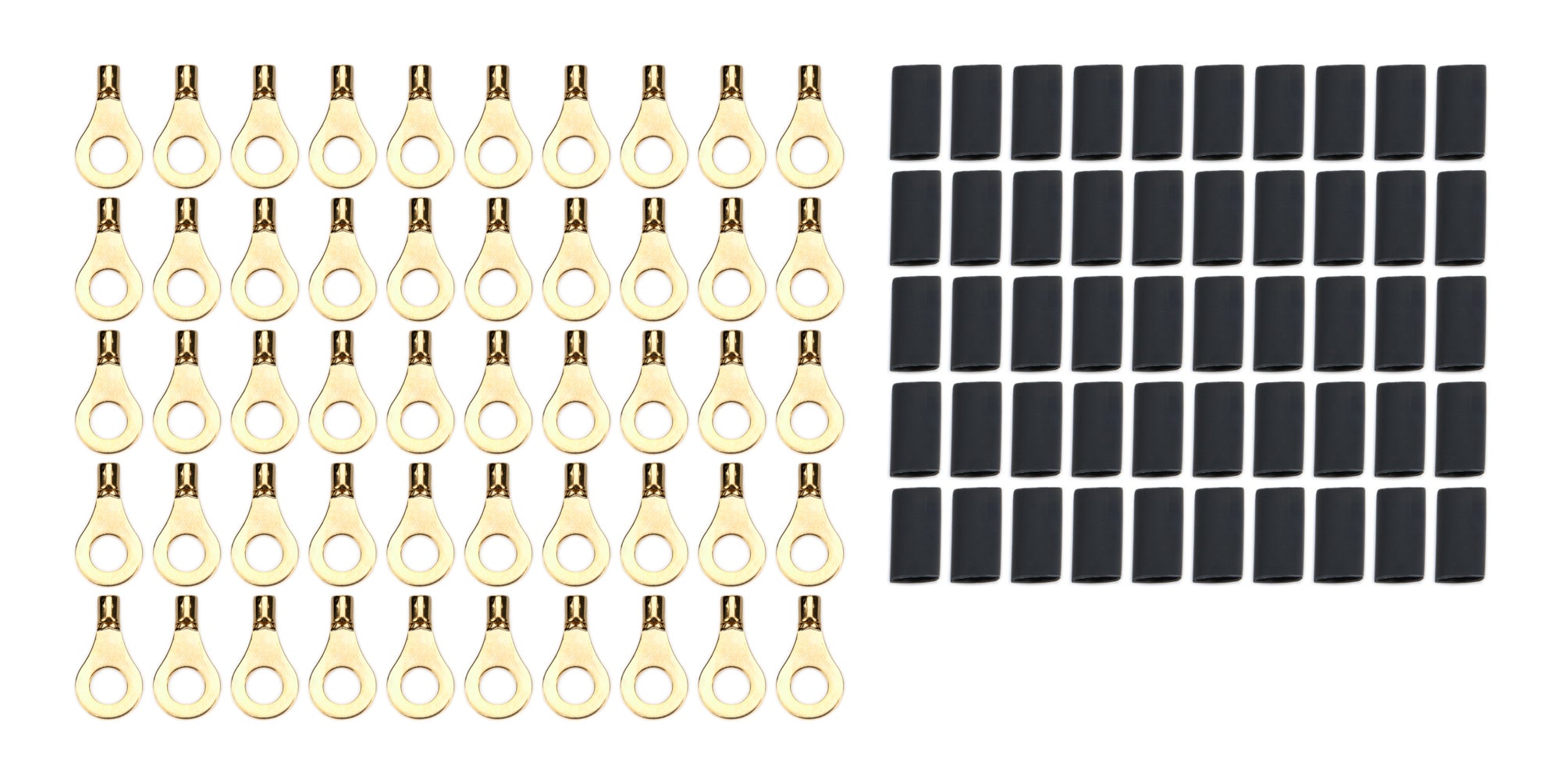 Ring Terminal - 16-14 Gauge Wire - 1/4 in Hole - Heat Shrink Included - Copper - Set of 50