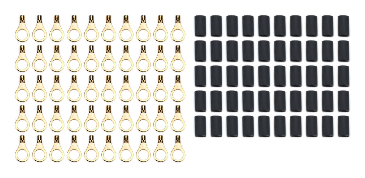 Ring Terminal - 16-14 Gauge Wire - 5/16 in Hole - Heat Shrink Included - Copper - Set of 50