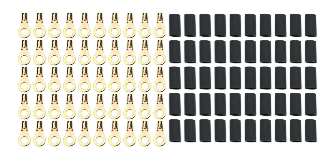 Ring Terminal - 8 Gauge Wire - 5/16 in Hole - Heat Shrink Included - Copper - Set of 50