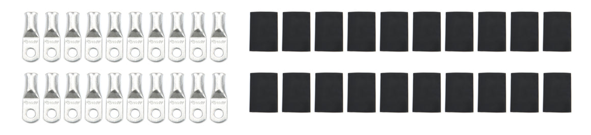 Battery Terminal - 4 Gauge - 1/4 in Eyelet - Heat Shrink Included - Copper - Tin Plated - Set of 20