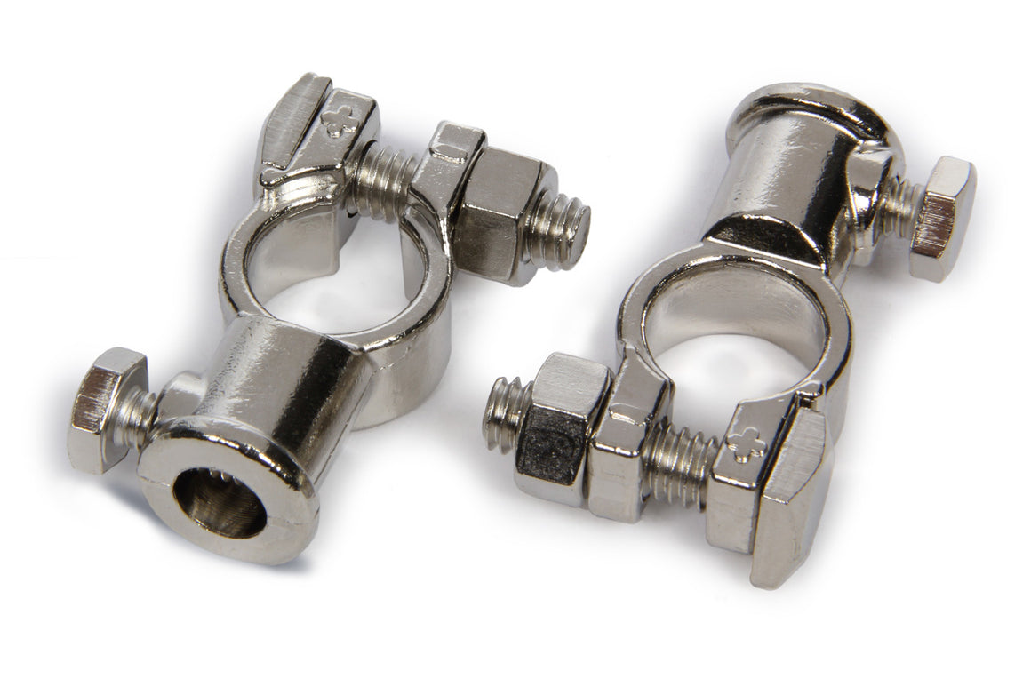 Battery Terminal - Top Post - Bolt-On - Brass - Nickel Plated - Pair