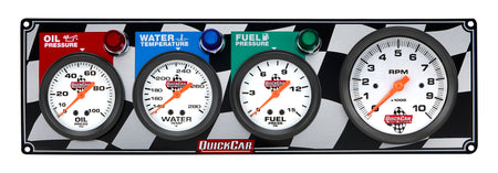 Gauge Panel Assembly - Fuel Pressure / Oil Pressure / Tachometer / Water Temperature - 3-3/8 in / 2-5/8 in Diameter - Silver Face - Warning Light - Kit