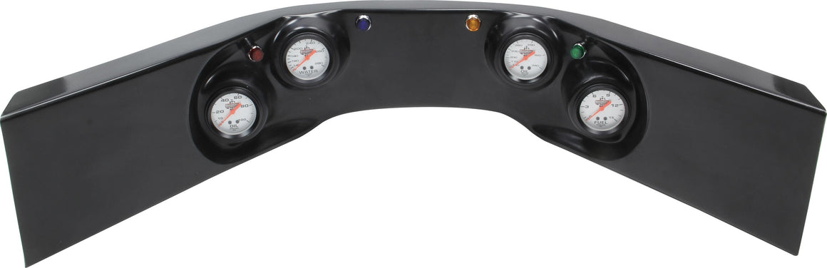 Gauge Panel Assembly - Standard - Fuel Pressure / Oil Pressure / Oil Temperature / Water Temperature - 2-5/8 in Diameter - Silver Face - Warning Light - Fiberglass - Black - Kit