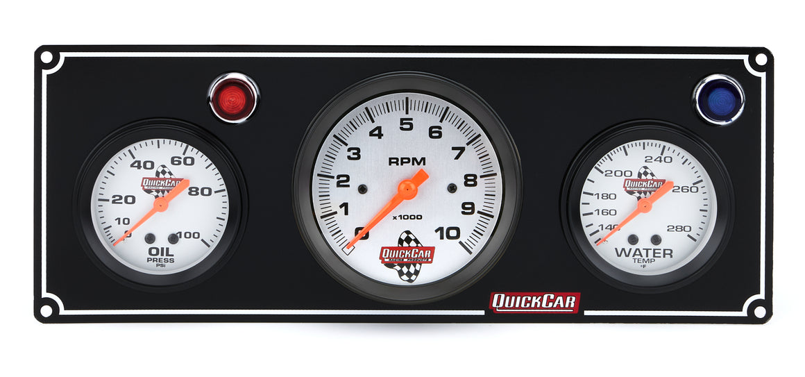 Gauge Panel Assembly - Oil Pressure / Tachometer / Water Temperature - 3-3/8 in / 2-5/8 in Diameter - Silver Face - Warning Light - Kit