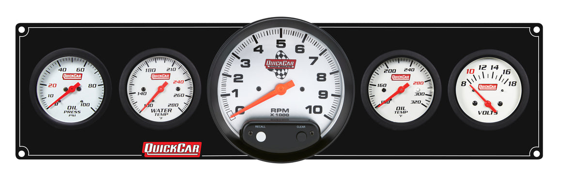 Gauge Panel Assembly - Extreme - Plain Panel - Oil Pressure / Oil Temperature / Water Temperature / Voltmeter / 5 in Tachometer - 2-5/8 in Diameter - White Face - Warning Light - Kit