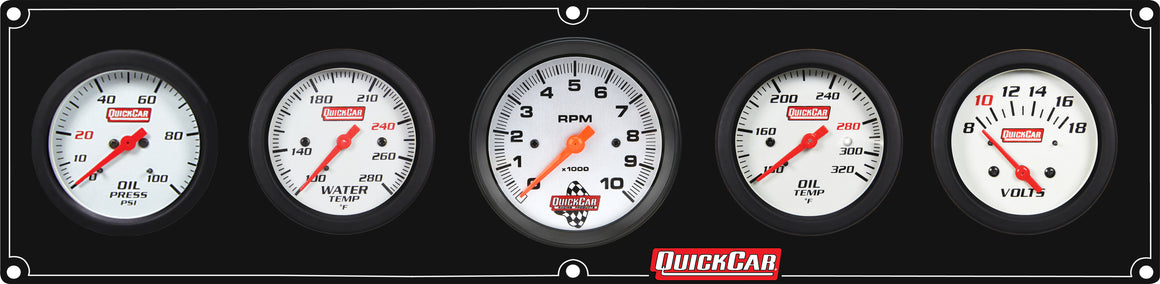 Gauge Panel Assembly - Extreme - Plain Panel - Oil Pressure / Oil Temperature / Water Temperature / Voltmeter / 3-3/8 in Tachometer - 2-5/8 in Diameter - White Face - Warning Light - Kit