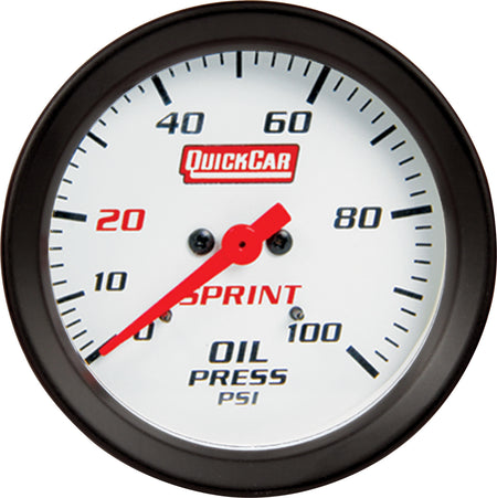 Oil Pressure Gauge - 0-100 psi - Mechanical - Analog - Full Sweep - 2-5/8 in Diameter - White Face - QuickCar Sprint Panels - Each