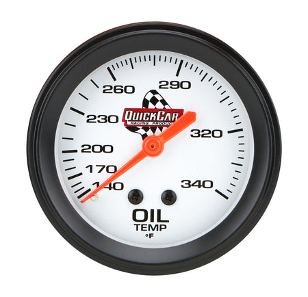 Oil Temperature Gauge - 140-340 Degree F - Mechanical - Analog - 2-5/8 in Diameter - Silver Face - Each