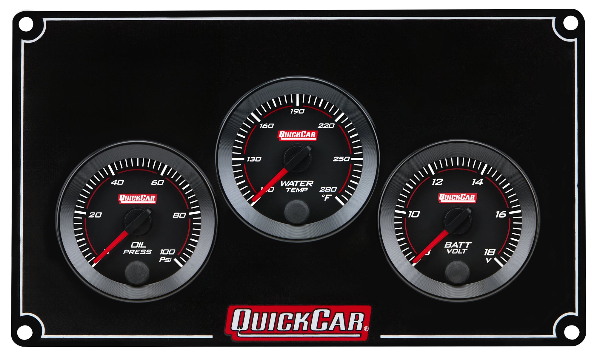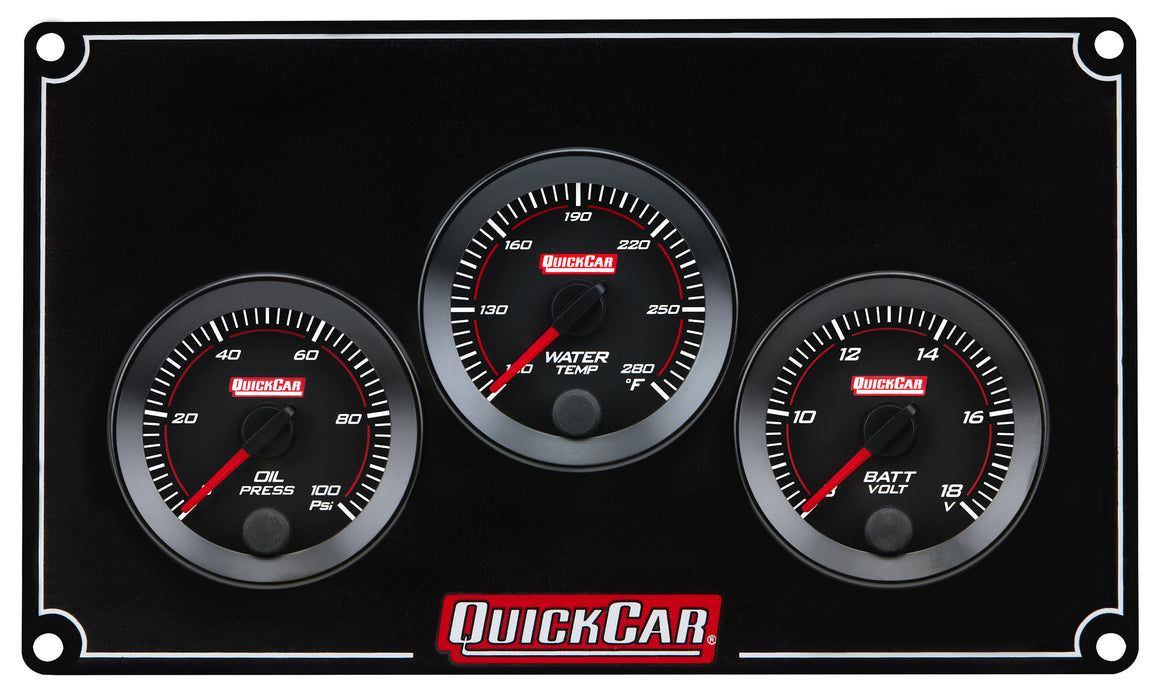 Gauge Panel Assembly - Redline - Oil Pressure / Water Temperature / Voltmeter - Black Face - Aluminum - Black - Kit