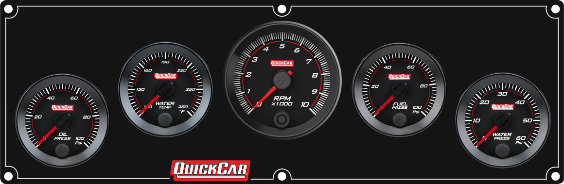 Gauge Panel Assembly - Redline - Oil Pressure / Water Temperature / Fuel Pressure / Water Pressure / Tachometer - 0-100 psi Fuel Pressure - Black Face - Aluminum - Black - Kit