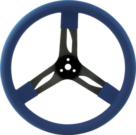 Steering Wheel - 15 in Diameter - 2.5 in Dish - 3-Spoke - Blue Rubberized Grip - Steel - Black Paint - Each
