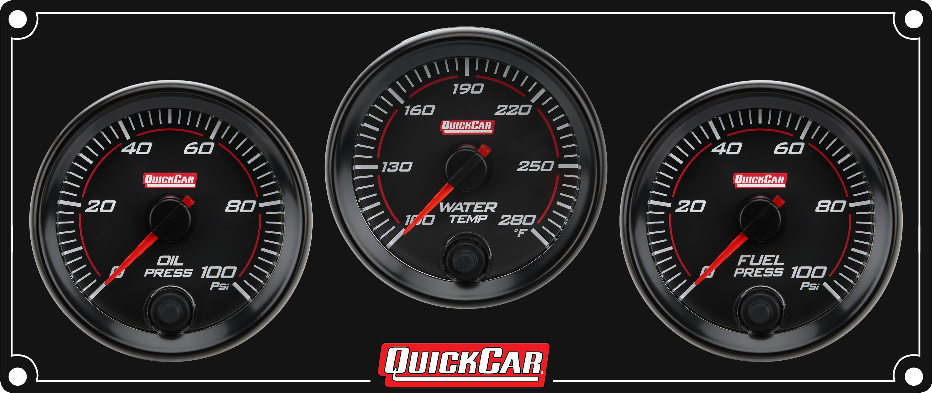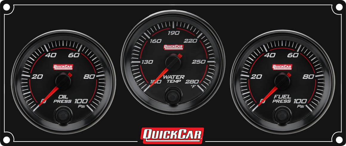 Gauge Panel Assembly - Redline - Oil Pressure / Water Temperature / Fuel Pressure - 0-100 psi Fuel Pressure - Black Face - Aluminum - Black Anodized - Kit