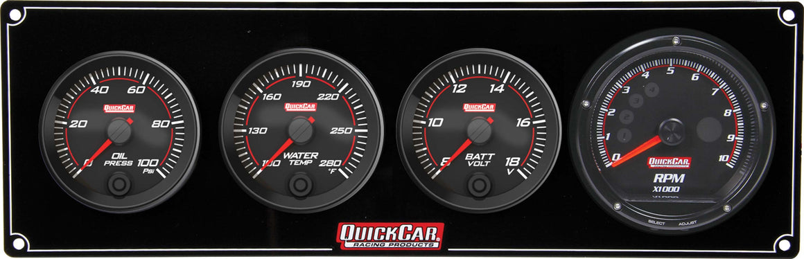 Gauge Panel Assembly - Redline - Oil Pressure / Water Temperature / Volt / Recall Tachometer - 3 in / 2-5/8 in Diameter - Black Face - Kit
