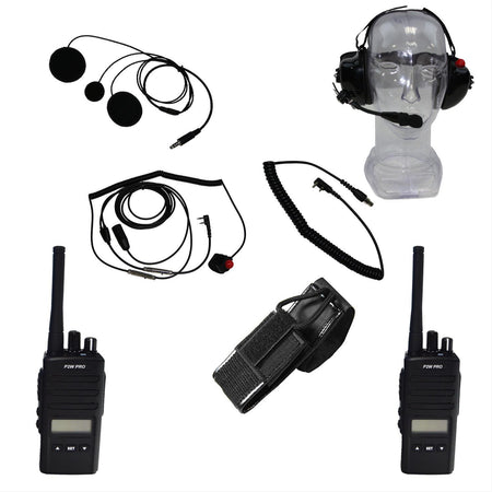 2-Way Radio - Pro Series - 2 Man - 200 Channel - Pouch / Charger / Earphones / Mic / Headset - Plastic - Black Kit